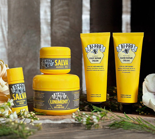 BI-PRO tilbyr naturlig, nærende svensk hudpleie med bivoks- og harpiksbaserte produkter som beskytter og pleier huden i all slags vær. Produktene skaper en beskyttende barriere, holder huden myk og er fri for konserveringsmidler, vann, alkohol, mineraloljer og tilsetningsstoffer. Skånsomme og egnet for hele familien.