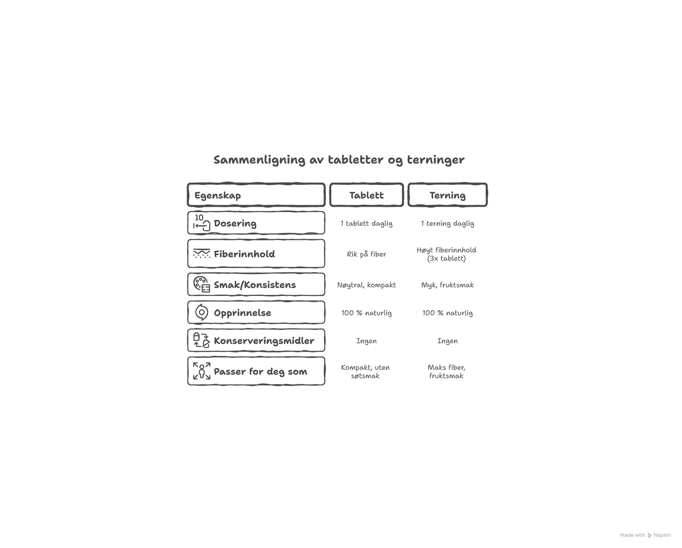 Terningene gir over 3× så mye fiber som tabletten per anbefalt dose – perfekt for deg som vil maksimere fiberinntaket.