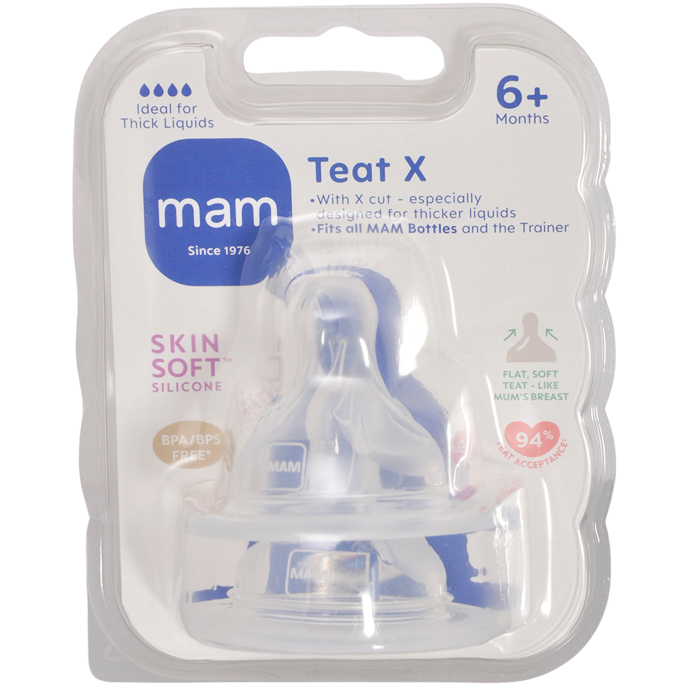 MAMs tåtesmokk med kryssåpning er ypperlig for mating med tykkere væsker, og er tiltenkt barn på 6 måneder og eldre.