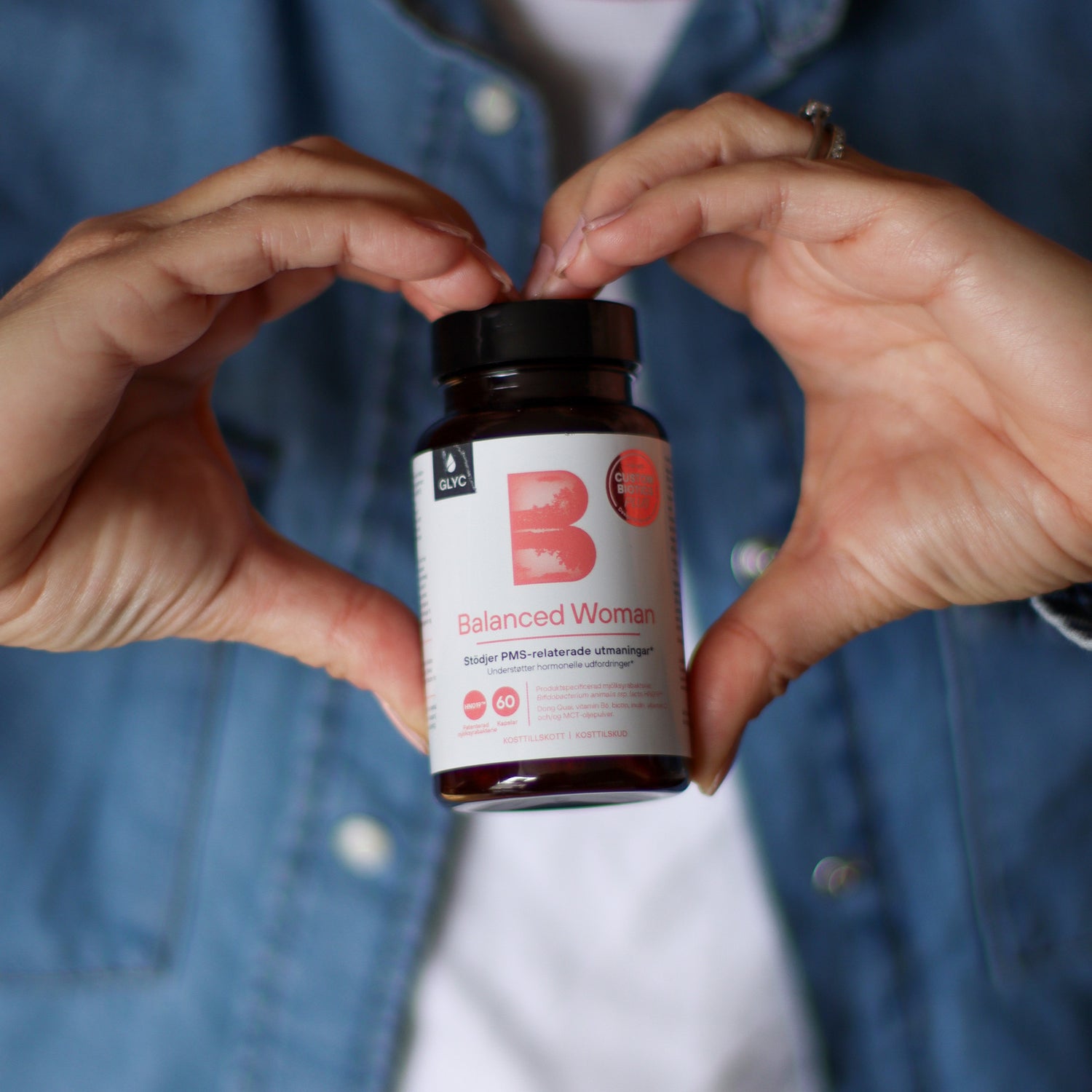 GLYC Balanced Woman er specielt udviklet til kvinder, der har brug for støtte ved PMS-relaterede udfordringer. Produktet er en del af serien ”Custom Biotics Plus”, indeholdende mælkesyrebakterier i kombination med skræddersyede næringsstoffer, for at imødekomme forskellige behov i livet. En komplet støtte til kvinders sundhed og balance.