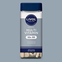 - Livol Multi Total 50+ er et daglig vitamin- og mineraltilskudd utviklet spesielt til deg over 50 år. Livol Multi Total 50+ har blitt tilsatt en høyere mengde B-, D- og E-vitaminer.