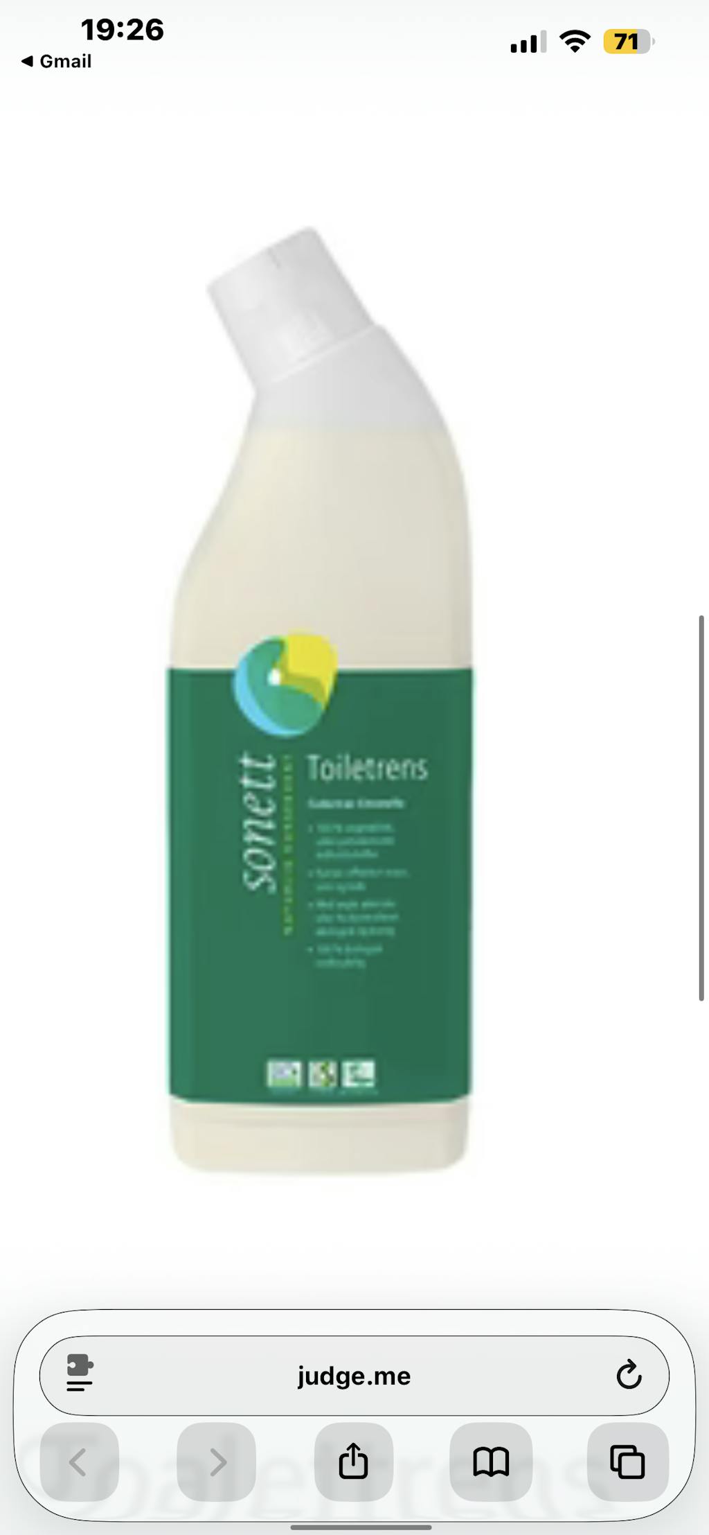 Sonett Toalettrens er et effektivt og miljøvennlig rengjøringsmiddel som fjerner skitt, urin og kalk fra toalettet, inkludert under kanten av toalettskålen. Produktet er laget av 100% vegetabilske ingredienser, helt uten petrokjemiske innholdsstoffer, og er fullstendig biologisk nedbrytbart.